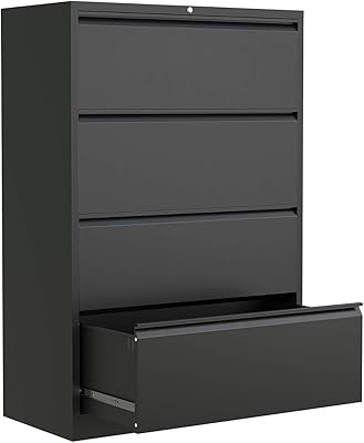4 Drawer Lateral File Cabinet Metal File Cabinet With Lock Letter Legal Size Lockable Heavy Duty Filing Cabinet Steel Construction Black 35 4 L X 17 7 W X 52 Lateral File Cabinet Filing Cabinet 4